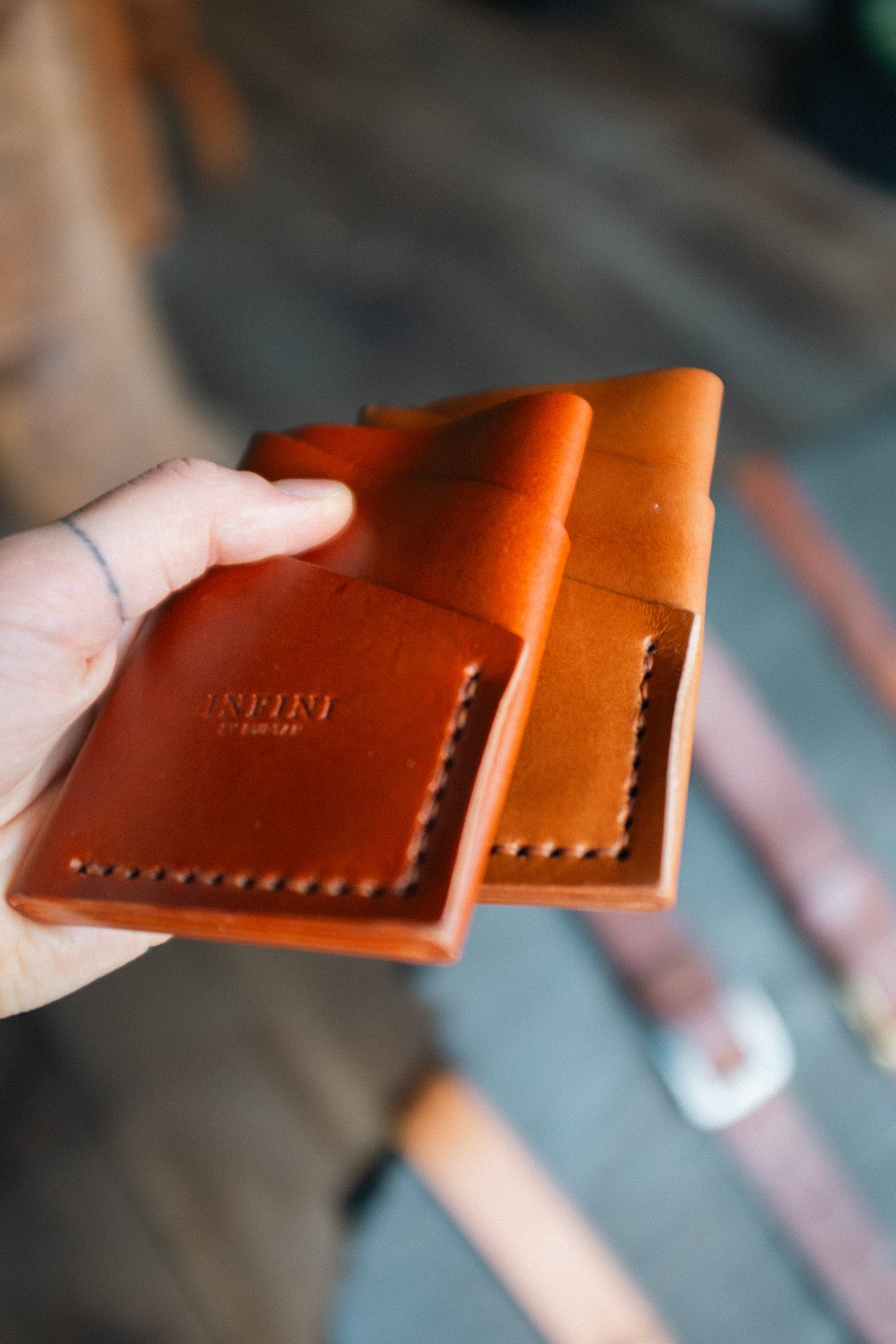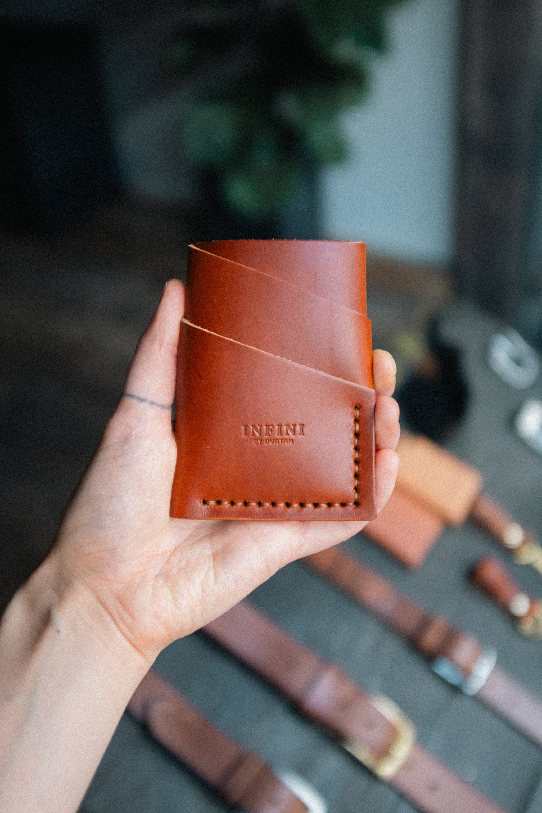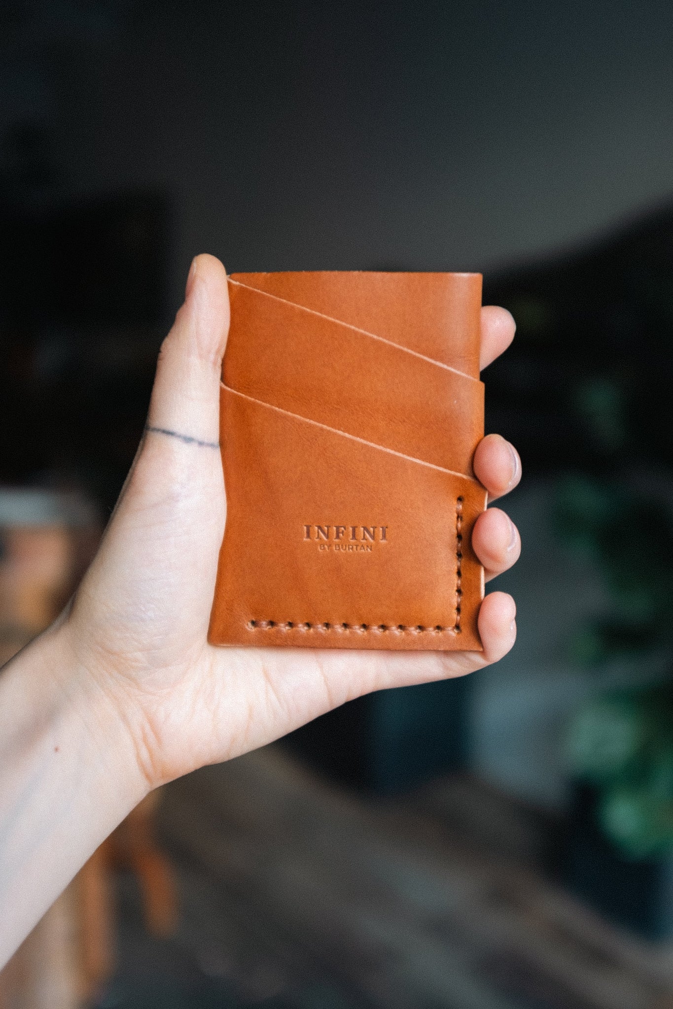 Skórzany ręcznie szyty portfel do kart z włoskiej skóry Buttero. Włoska skóra Buttero, pochodząca z Toskanii, to materiał premium ceniony za swoją trwałość i elegancję.